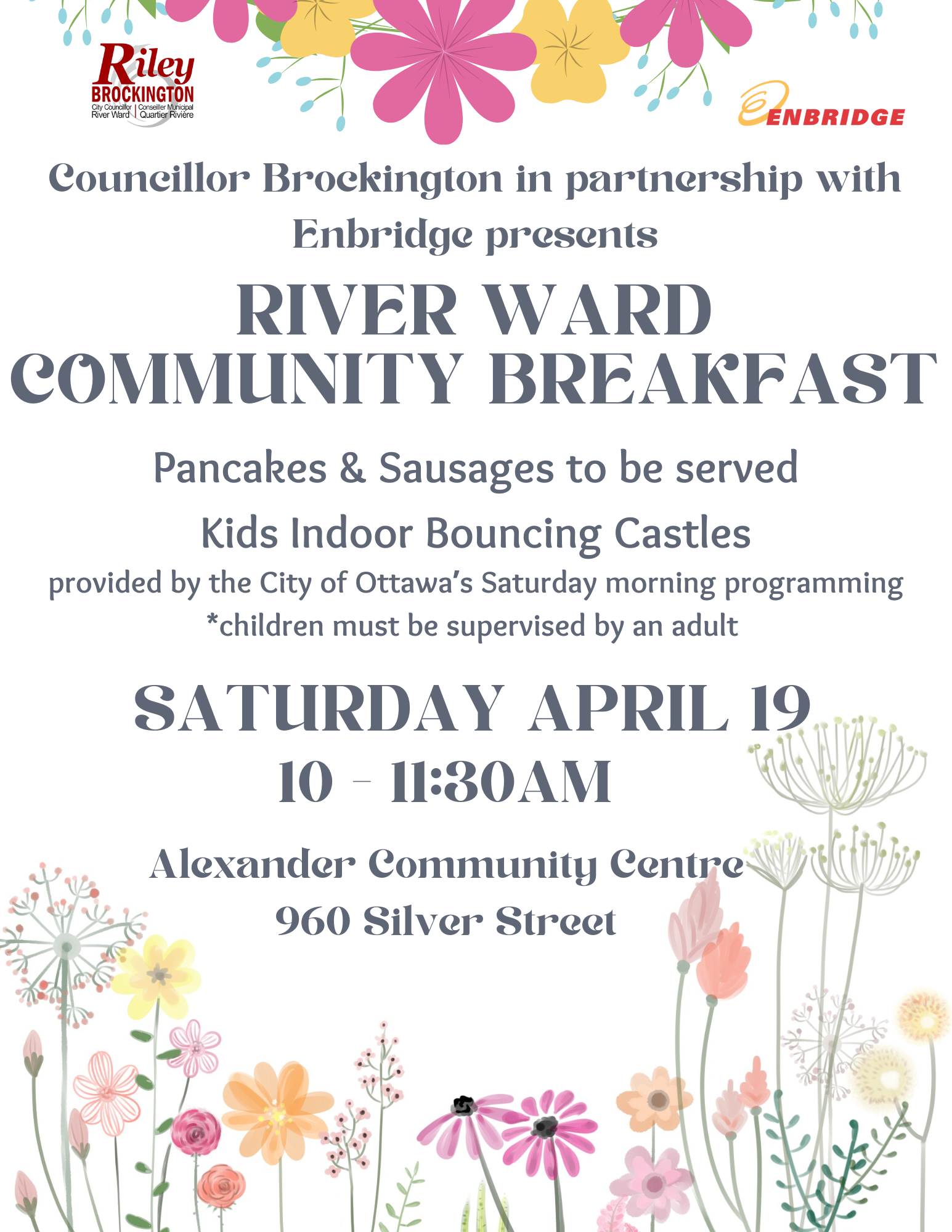 Join Councillor Brockington in partnership with Enbridge on April 19 for River Ward’s Community Breakfast.